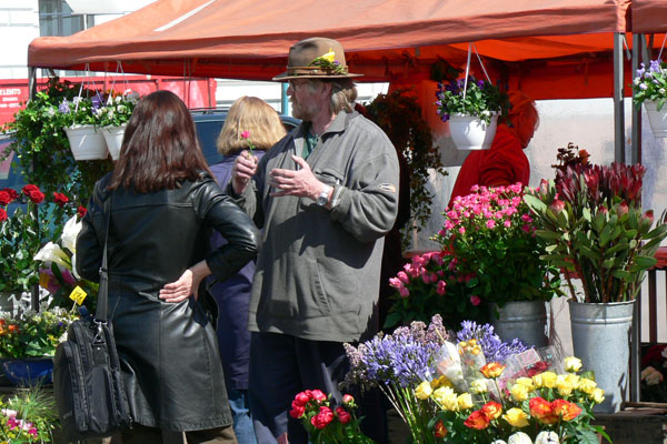 Torikauppiaiden myyntiteltat Helsingin Kauppatorilla ilahduttavat värikkyydellään ohikulkijoita ja muistuttavat itsekin suuria kukkakimppuja.