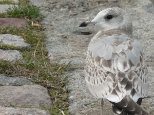 Tähän aikaan vuodesta rannoilla näkyy paljon lokkilapsia, joiden pitäisi selvitä omin voimin täysikasvuisten lintujen maailmassa. Itsenäistyminen on tietysti mukavaa, mutta joskus yksinäistä. Ehkä tämäkin lokki tahtoisi olla vielä kotipesässä elelevä vauva, jota emo ruokkii kalalla ja pihistämillään pullanpalasilla.
