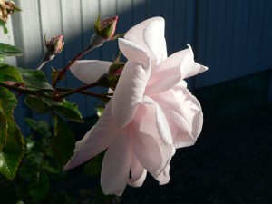 ‘New Dawn’ -lajikkeen valkoinen ruusu näyttää säteilevän melkein ylimaallista valoa syksyisessä aamussa. Ei ihme, että mystikot ovat ottaneet ruusun omakseen ja pitävät sitä tunnuksenaan. Länsimaisessa kulttuurissa valkoinen väri saa vertauskuvallisen sisällön. Se merkitsee mm. paratiisin viattomuutta, mutta myös kuoleman jälkeistä puhdistumisen ja puhtauden tilaa, paluuta kaikki olennot synnyttävään alkuperään.