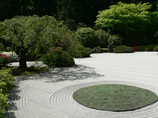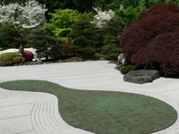Japanilaisille puutarha on yhtä aikaa taidetta, ja sen kyllä aisti Portlandissakin. Tapa, jolla puutarhassa yhdistyvät eloton kivi ja elävät kasvit, on yhtä aikaa kaunis ja filosofinen. Paljon huomiota kiinnitetään muotojen ja tekstuurien vaihteluun. Eri elementtien rajapinnat suunnitellaan huolellisesti. Esimerkiksi hiekkapuutarhassa vihreiden ’saarien’ ja vaalean hiekan välinen kontrasti oli minusta hyvin kaunis. Niiden välistä rajaa oli korostettu hiekkaan upotetuilla lyhyillä puupaaluilla, jotka ympäröivät molempien saarien rantaviivaa.