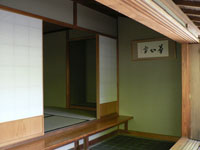 Vain vähän matkan päässä alemmasta lammesta sijaitsi teehuone ja kaksi sen yhteyteen kuuluvaa puutarhaa. Sisempi puutarha ympäröi teehuonetta ja ulommassa oli maja, jossa teetilaisuuteen kutsutut vieraat odottavat tilaisuuden alkamista. Teehuone oli hillityssä yksinkertaisuudessaan hyvin viehättävä rakennus. Siinä oli matala katto, maanväriset seinät ja pitkät räystäät, jotka tekivät siitä varjoisan ja salaperäisen. Hämäryys onkin olennainen osa japanilaisten teehuoneiden estetiikkaa. Irtoseinien ja sermien avulla ulkoa tulevan luonnonvalon kirkkautta voidaan himmentää. Puutarhan puut oli tarkoituksellisesti istutettu lähelle teehuoneen ulkoseiniä, jotta ne antaisivat näkösuojaa ja varjelisivat rakennusta liialta valolta. Koska vierailin japanilaisessa puutarhassa lämpimänä ja aurinkoisena päivänä, saatoin kokea itse, miten tehokkaasti kasvit ja puut suojelivat teehuoneen rauhaa. Vaikka muualla puutarhassa kierrellessä tuli kuuma, teepuutarhassa oli koko ajan vilpoisaa ja raikasta.