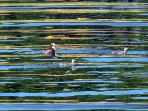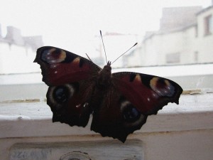 A soft, colourful wave which is raising and falling against the glassy, transparent shore of the window.